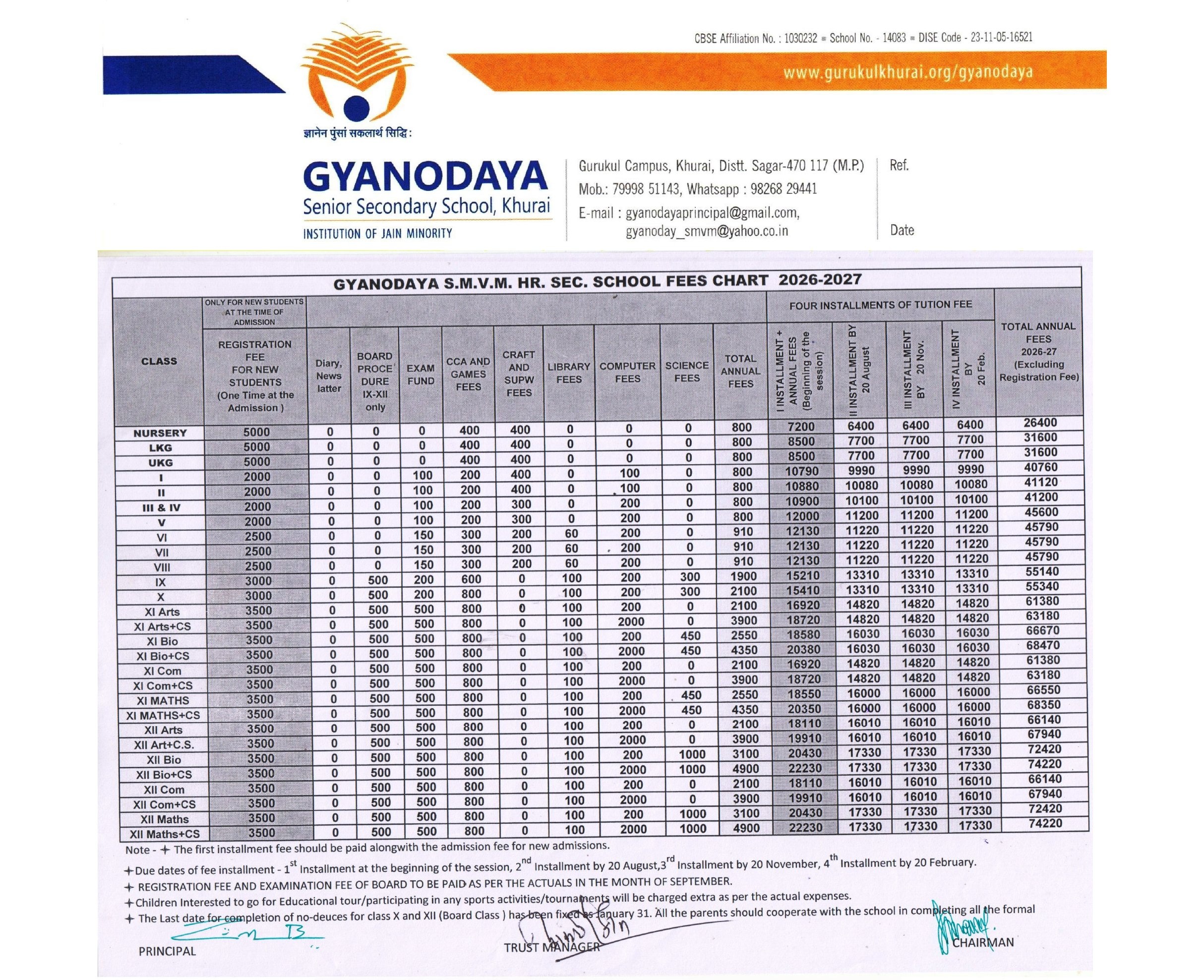 | 4 | Complete Address: | GYANODAYA SMVM HR SEC SCHOOL GURUKUL CAMPUS KHURAI DISTT. SAGAR M.P. -470117 |